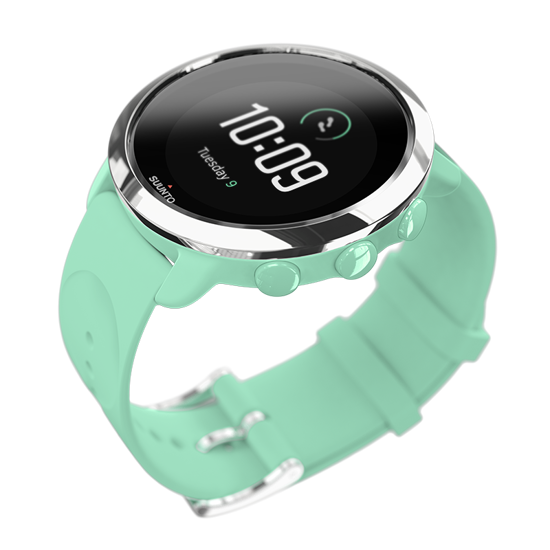 GENERAL Bezel material Stainless steel Glass material Polyamide Case material Glass fibre reinforced polyamide Strap material Silicone Weight 36 g / 1.27 oz Strap width 20 mm Integrated wrist heart rate Yes, Valencell technology Color display Yes Water resistance 30 m (according to ISO 6425) Battery indicator Percentage / icon Battery type Rechargeable lithium-ion Firmware upgradable Yes Time, date Yes Alarm clock 1 configurable alarm Dual time Yes Stopwatch timer Yes Countdown timer Yes Vibration alert Yes Languages EN, CS, DA, DE, ES, FI, FR, IT, JA, KO, NL, NO, PL, PT, RU, SV, ZH, TH, TR Backlight LED Configurable backlight Yes Button lock During exercise Display type Matrix Display resolution 218 x 218 Metric and imperial units Yes Automatic daylight saving time Yes Wrist sizes: 120-210 mm Customizable watch faces Yes PHYSICAL SPECIFICATIONS Operating temperature -20° C to +60° C / -5° F to +140° F Storage temperature -30° C to +60° C / -22° F to +140° F Recommended charging temperature 0° C to +35° C / +32° F to +95° F BATTERY LIFE Training mode without GPS Up to 40h With 24/7 tracking and mobile notifications Up to 5 days In time mode Up to 10 days Training mode with GPS Up to 30h with connected GPS CONNECTIVITY Connectivity (between devices) Bluetooth Smart Compatible with Suunto app Yes Smartphone compatibility Most common models supported Compatible with Suunto Movescount No Phone notifications on the watch with Suunto App Compatible with online sports communities No Watch software updates from cloud Yes 24/7 Activity Tracking Sleep Tracking Stress and Recovery OUTDOOR FUNCTIONS GPS Tracking & Navigation Weather TRAINING FUNCTIONS Adaptive Training Guidance Interval Training Heart Rate (Requires HR Belt Or Wrist HR Monitor) Speed and Distance Training Recovery Planning Training Load Share and Relive SPORT EXPERTISE Swimming Cycling Running Multisports Sport Modes - In The Box